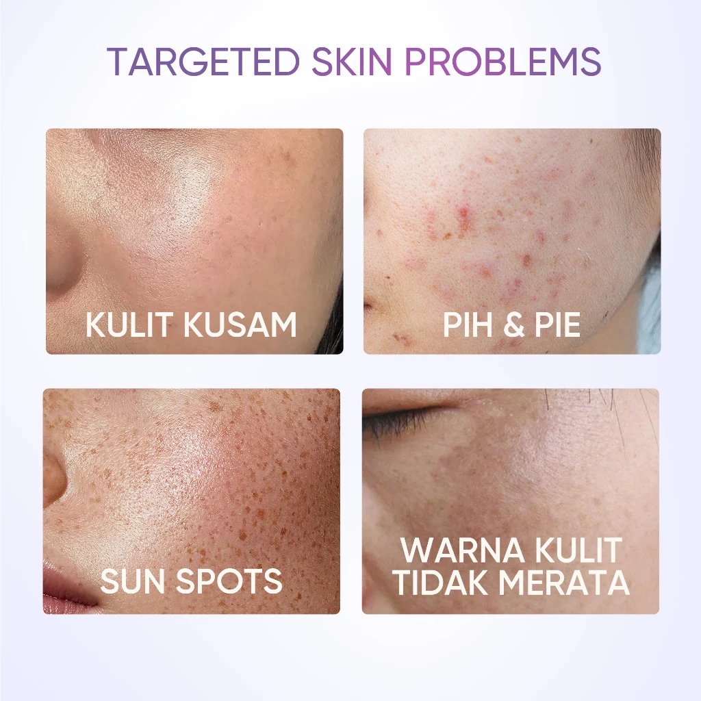 Dapatkan kulit bercahaya dan bebas noda hitam dengan Moisturizer 30 ml yang mengandung Symwhite 377, Glutathione, dan Tranexamic Acid dalam Triple Active Formula. Produk ini efektif menyamarkan noda hitam membandel, bekas jerawat, dan sun spots, sambil mencerahkan kulit secara signifikan. Dengan tekstur velvet yang ringan, moisturizer ini mudah meresap tanpa meninggalkan rasa greasy, memberikan kelembaban optimal yang diperlukan kulit Anda. Selain itu, Glutathione berfungsi sebagai antioksidan kuat yang membantu mencegah tanda-tanda penuaan dini. Untuk hasil terbaik, gunakan secara teratur dan nikmati keunggulan dari moisturizer yang tidak hanya melembapkan tetapi juga mencerahkan kulit Anda.