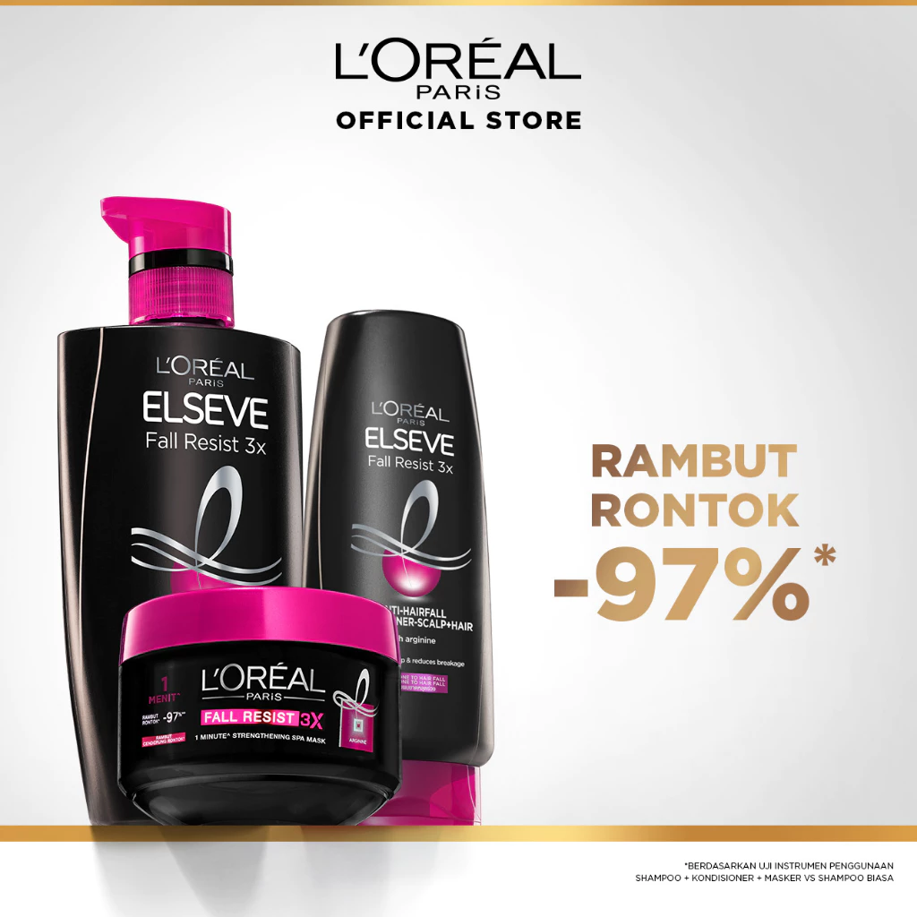 L'OREAL PARIS FALL REPAIR 3X ANTI-HAIR FALL adalah solusi perawatan rambut yang dirancang untuk mengatasi masalah rambut rontok hingga 97%*. Dengan kombinasi teknologi mutakhir dan bahan-bahan aman, produk ini menawarkan tiga aksi efektif untuk memperkuat rambut dari pangkal hingga ujung. Setiap paket L'Oreal Paris Fall Repair 3X berisi rangkaian treatment yang diperkaya dengan Arginine Protein, yang berperan penting dalam pertumbuhan rambut, serta menutrisi dan mengembalikan kekuatan rambut secara menyeluruh. Dengan ukuran yang praktis dan mudah digunakan, perawatan ini tidak hanya membuat rambut tampak sehat dan indah, tetapi juga mengurangi kerontokan secara signifikan. Dapatkan rambut yang kuat dan berkilau dengan rutin menggunakan L'Oreal Paris Fall Repair 3X, pilihan tepat untuk perawatan rambut rusak, kering, dan diwarnai.