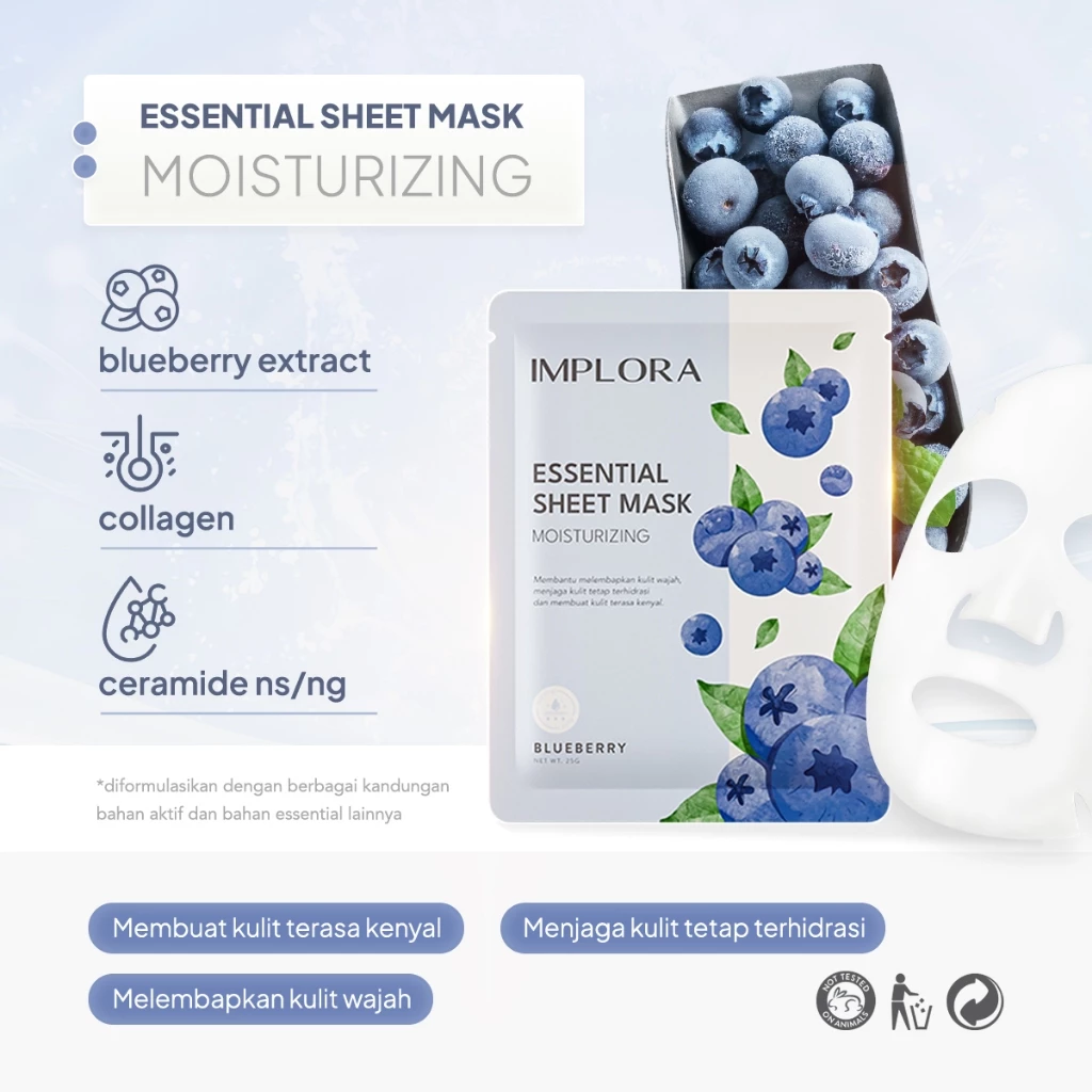 Implora Essential Sheet Mask adalah solusi praktis untuk perawatan kulit yang efektif, hadir dalam kemasan sachet 25 gram. Diformulasikan dengan bahan berkualitas tinggi, sheet mask ini dirancang untuk memenuhi kebutuhan spesifik kulit Anda, menawarkan 5 varian dengan fungsi berbeda untuk mengatasi berbagai permasalahan kulit. Setiap sheet mask memberikan kelembapan dan nutrisi optimal, menjadikannya pilihan ideal untuk rutinitas kecantikan harian. Untuk perawatan yang maksimal, gunakan secara teratur dan ikuti petunjuk penggunaan yang tertera pada kemasan. Dapatkan hasil yang menakjubkan dengan Implora Essential Sheet Mask, pilihan tepat bagi Anda yang menginginkan kulit yang sehat dan bercahaya.