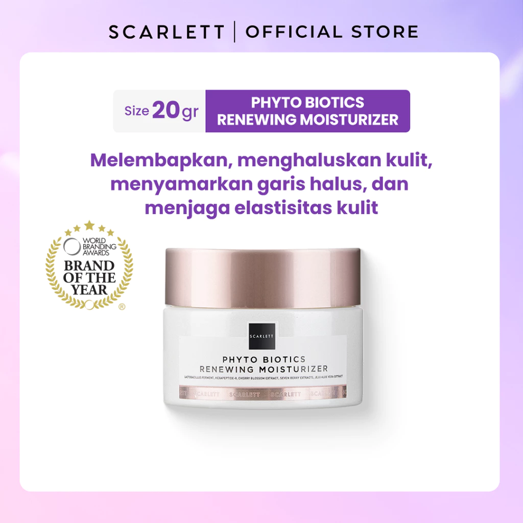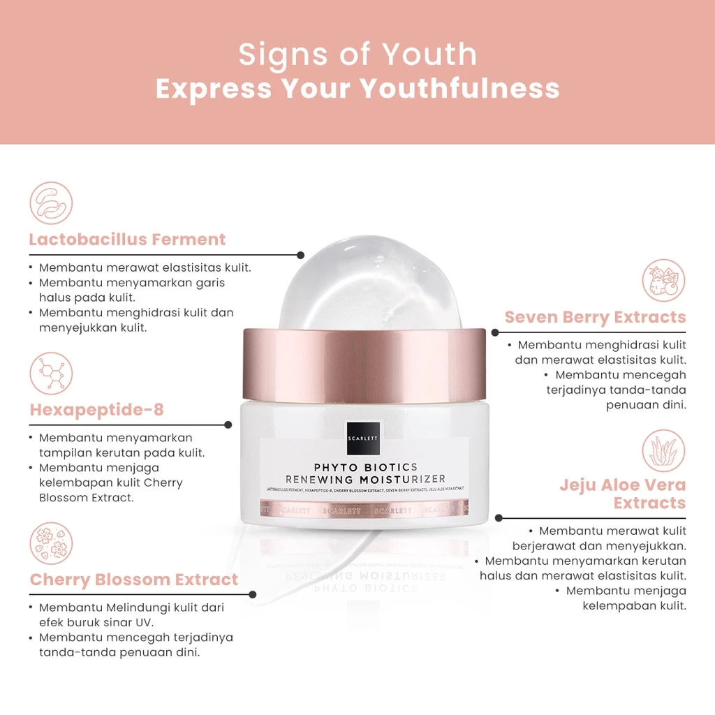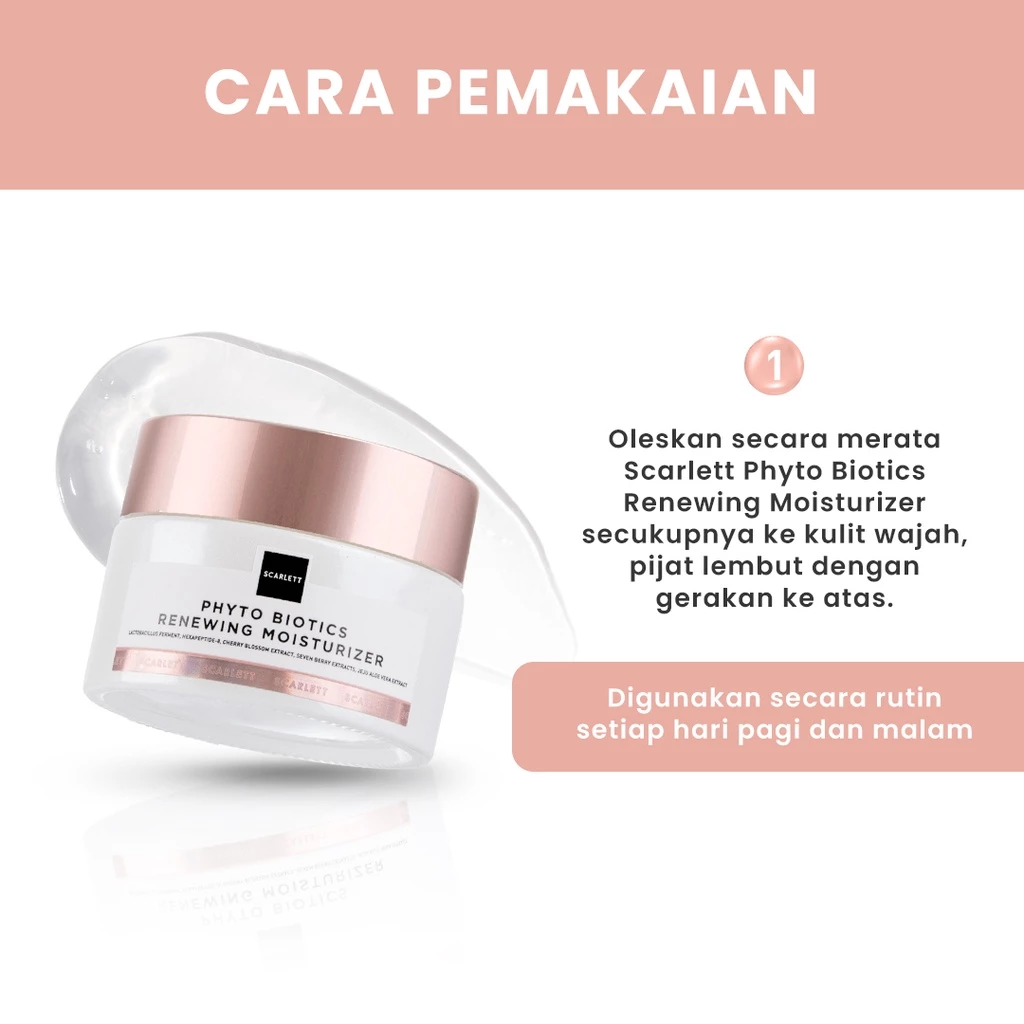 Dapatkan kulit yang tampak muda dan segar dengan Scarlett Whitening - Phyto Biotics Renewing Moisturizer 20gr, produk unggulan yang dirancang khusus untuk mengatasi garis halus dan menjaga kekencangan kulit. Setiap kemasan mengandung Phyto Biotics yang kaya akan antioksidan aktif untuk meningkatkan produksi kolagen, serta Lactobacillus Ferment yang berfungsi meningkatkan elastisitas kulit dan menyamarkan garis halus. Selain itu, Hexapeptide-8 bekerja seefektif botox untuk memberikan efek pengencangan pada kulit Anda. Untuk perawatan yang optimal, oleskan secara merata pada wajah dan pijat lembut hingga meresap, gunakan dua kali sehari, pagi dan malam. Dengan ukuran praktis 20gr, Scarlett Phyto Biotics Renewing Moisturizer adalah solusi all-in-one untuk perawatan kulit Anda, memberikan keunggulan dalam menjaga kecantikan dan kesehatan kulit Anda setiap hari.