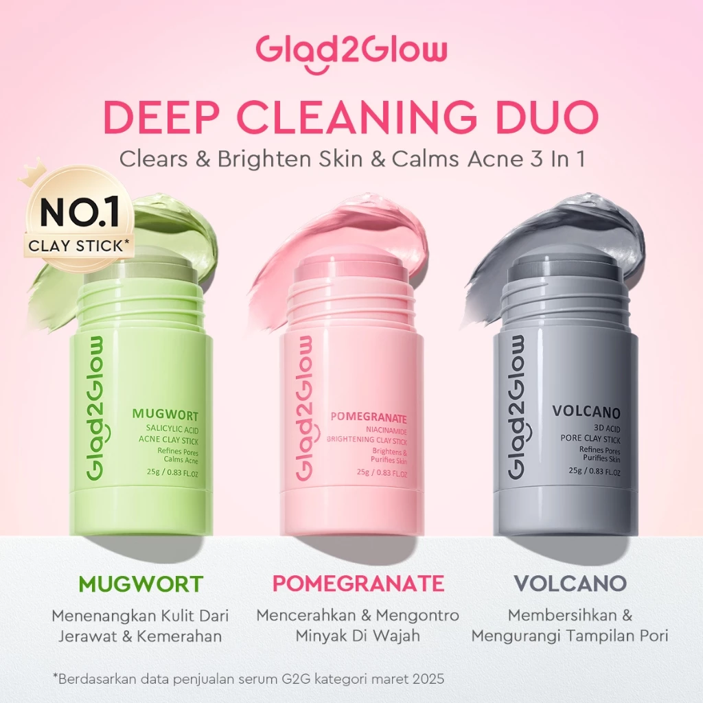 Temukan solusi perawatan kulit yang efektif dengan rangkaian produk Glad2Glow, termasuk Glad2Glow Mugwort Salicylic Acid Acne Clay Stick, Glad2Glow Pomegranate Niacinamide Brightening Clay Stick, Glad2Glow Volcano 3D Acid Pore Clay Stick, dan Glad2Glow Real Mugwort Salicylic Acid Acne Control Clay Mask. Setiap clay mask berbentuk stick ini dirancang untuk kemudahan penggunaan dan portabilitas, memungkinkan Anda untuk merawat kulit wajah tanpa kerepotan. Dengan bahan-bahan alami seperti Mugwort, Salicylic Acid, Niacinamide, dan Pomegranate, produk ini tidak hanya membersihkan dan menenangkan kulit berjerawat, tetapi juga mencerahkan dan mengontrol minyak berlebih. Dengan ukuran 30 gr, setiap stick memberikan coverage tinggi, mudah diaplikasikan dengan satu swipe, dan tidak meninggalkan sensasi kering pada kulit. Selain itu, Glad2Glow Volcano 3D Acid Pore Clay Stick dan Volcano 3D Acid Pore Clay Mask menggunakan teknologi 3D Acid untuk membersihkan tampilan pori secara mendalam, cocok untuk kulit berminyak dan berjerawat. Perawatan yang sederhana dan efektif ini memudahkan Anda mendapatkan kulit bersih, halus, dan sehat.