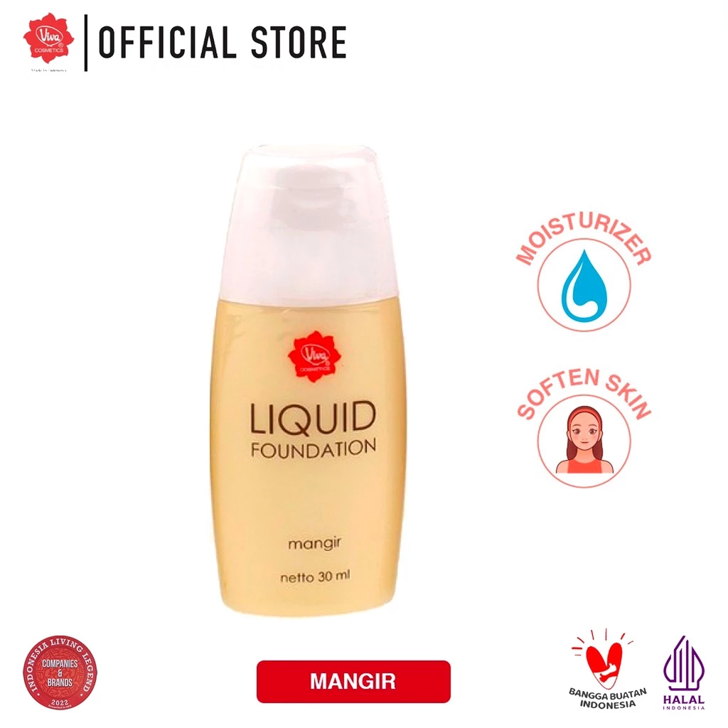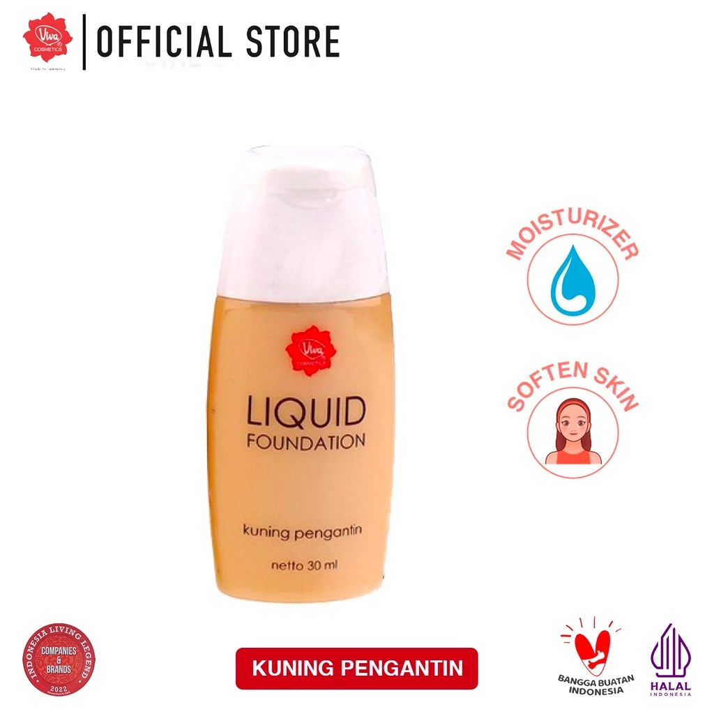 Viva Liquid Foundation adalah alas bedak cair yang ringan dan cocok untuk semua jenis kulit, diperkaya dengan emollient dan moisturizer untuk melembutkan dan melembabkan kulit wajah. Tersedia dalam kemasan 30 ml, produk ini menawarkan lima varian warna yaitu Ochre, Mangir, Natural, Kuning Langsat, dan Kuning Pengantin, sehingga Anda dapat memilih sesuai dengan kebutuhan kulit Anda. Untuk pemakaian yang optimal, oleskan Viva Liquid Foundation secara merata di kulit wajah sebelum menggunakan bedak, agar kulit tampak halus dan segar. Keunggulan dari produk ini adalah kemampuannya untuk memberikan tampilan yang natural dan fresh, membuatnya sangat cocok digunakan sehari-hari. Dapatkan kulit yang cantik dan bercahaya dengan Viva Liquid Foundation!