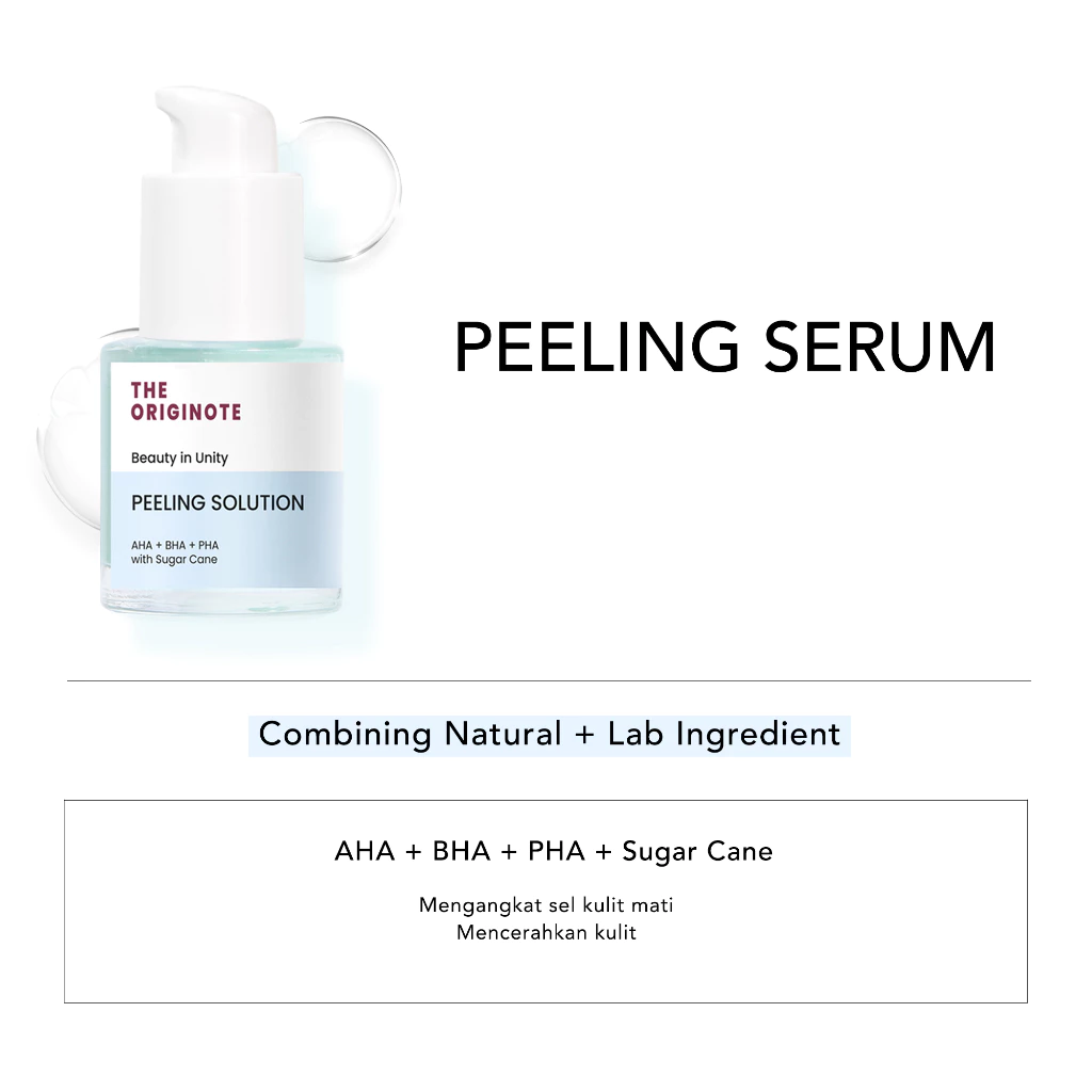 Kenali The Originote Peeling Solution, cairan eksfoliasi dengan netto 20ml yang diformulasikan khusus menggunakan AHA, BHA, PHA, dan Sugar Cane untuk mengangkat sel kulit mati dan merawat keremajaan kulit, sehingga memberikan efek cerah yang maksimal. Dalam satu paket, Anda akan menemukan produk berkualitas yang tidak hanya mencerahkan kulit, tetapi juga membantu menjaga kelembapan dan kesehatan kulit secara keseluruhan. Untuk penggunaan yang efektif, cukup teteskan 5-10 tetes pada wajah yang kering dan bersih setelah mencuci wajah, hindari area sensitif, biarkan selama 10 menit, lalu bilas dengan air hangat dan keringkan. Disarankan untuk menggunakan produk ini pada malam hari sebanyak 2-3 kali dalam seminggu agar mendapatkan hasil terbaik. Dengan keunggulannya dalam mengangkat sel kulit mati dan meningkatkan kecerahan wajah, The Originote Peeling Solution adalah pilihan tepat untuk perawatan kulit Anda.